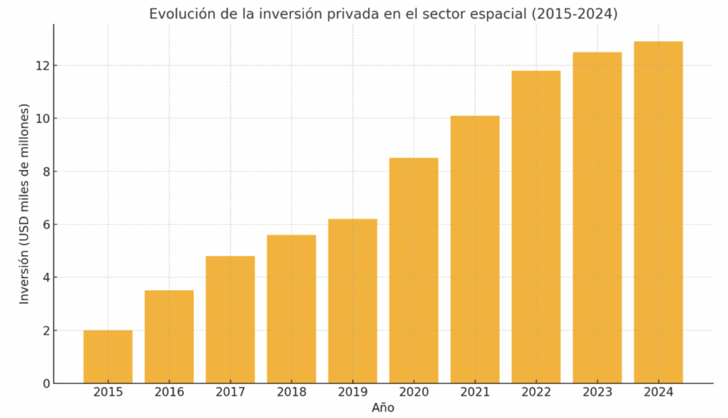 Gráfico 1. Evolución de la inversión privada en el sector espacial (2015-2024)